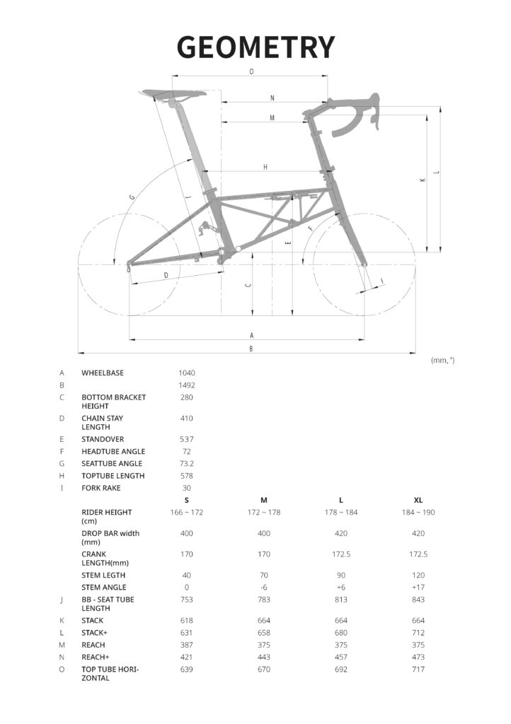 Frame sizing is determined primarily by rider height; however, as with high-end road bicycles, crank arm length, stem length, and handlebar width must be finalised at the time of order. Once confirmed—or once component installation has begun—size changes cannot be accommodated. We strongly recommend a professional bike fitting in advance. For clients who already know their measurements, this data can be integrated directly into the MIKALON technical drawings to ensure an exact fit.